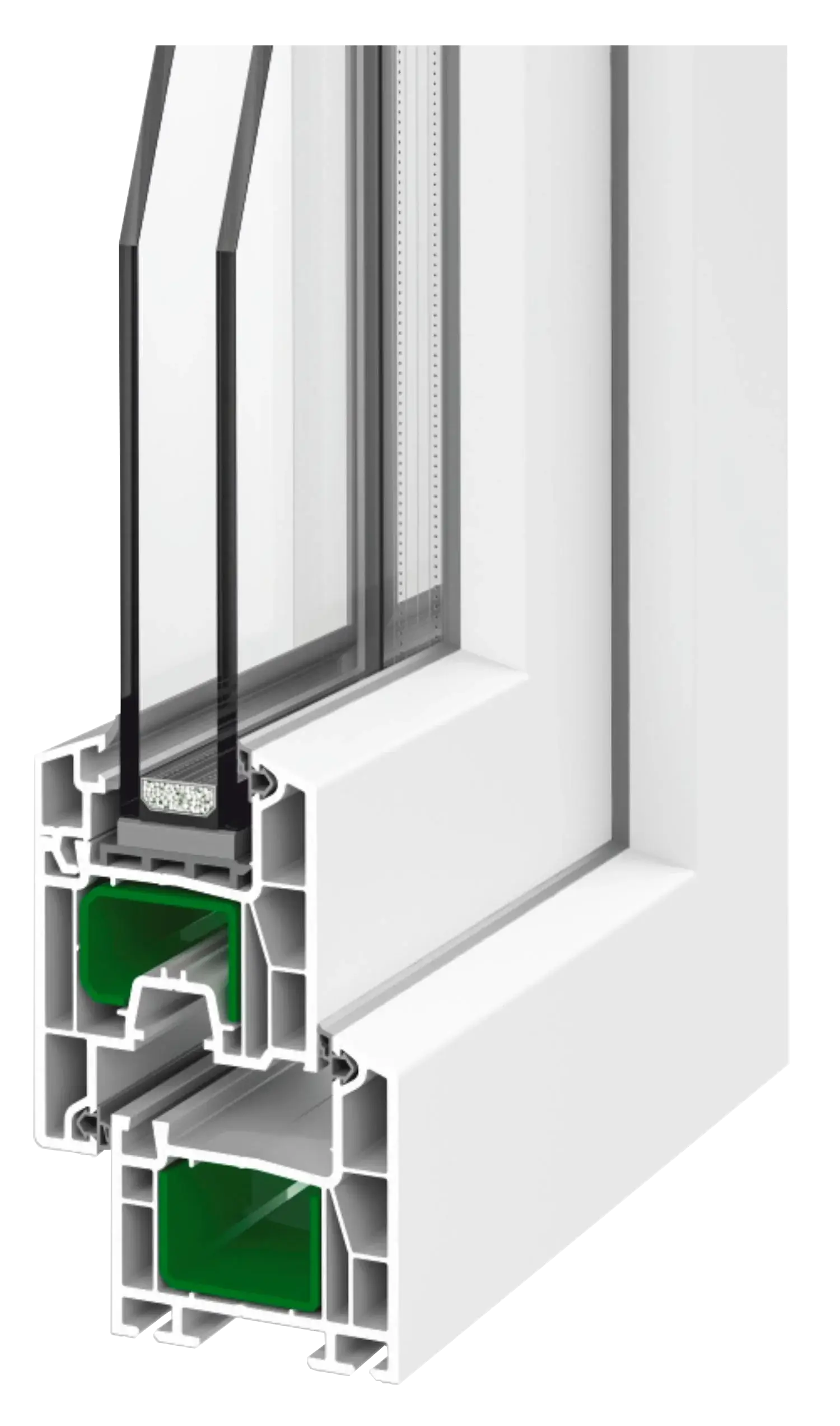 4-камерна профільна система з ПВХ з монтажною шириною 58 мм. Має квадратну форму. Поєднує сукупність найбільш важливих для споживача якостей за доступною ціною. Розрахована на виготовлення конструкцій будь-яких типів відчинення. Чудово підійдуть для скління як нежитлових приміщень, так і житлових 2 теплової зони України.